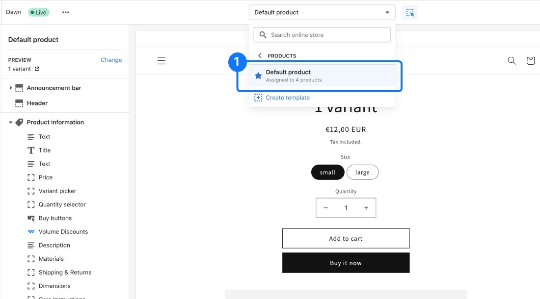 Then click on Default Product (this might change if you have different product pages). The important point is to keep in mind is that FloatyApps is just available on product pages.